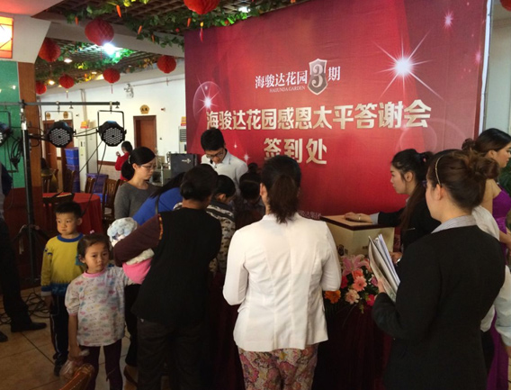 11月23日, 梧州海駿達(dá)花園舉行太平業(yè)主答謝會?;顒友埩颂降牟糠謽I(yè)主、誠意客戶、商會人士及村鎮(zhèn)府領(lǐng)導(dǎo)親臨現(xiàn)場?,F(xiàn)場人氣火爆,認(rèn)購積極。現(xiàn)場不少客戶都帶上親朋好友親臨,主動咨詢項(xiàng)目信息,并一同購買。當(dāng)天還有精彩表演和家電大抽獎,為答謝會增添了不少樂趣及熱情。